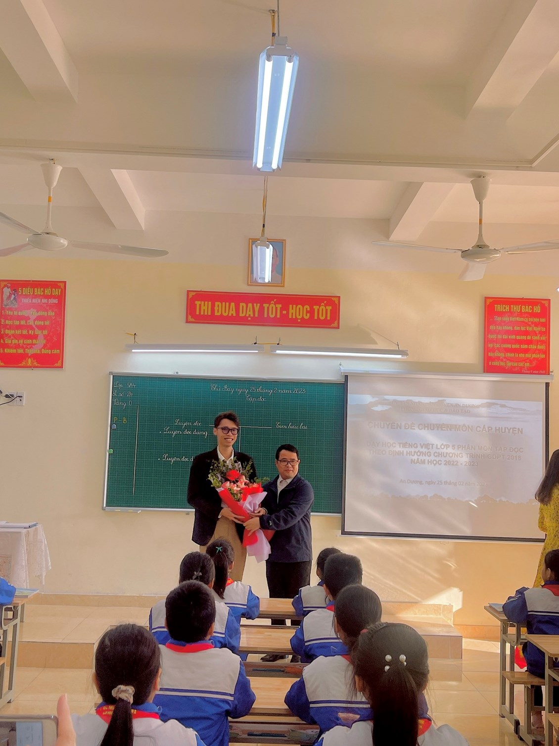 Sáng ngày 25/02/2023, trường Tiểu học Đại Bản I tổ chức lên lớp chuyên đề chuyên môn cấp huyện "Dạy học Tiếng Việt 5 theo định hướng chương trình GDPT 2018".
