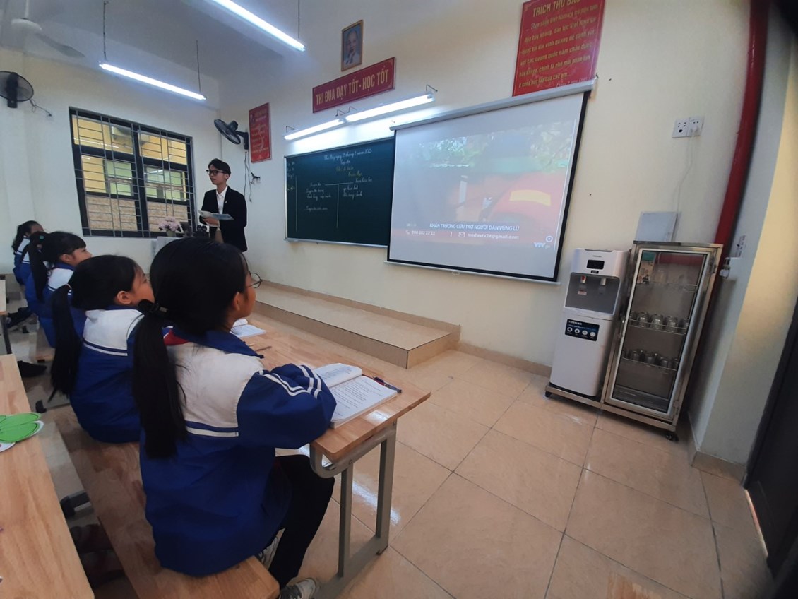 Các em học sinh vào lớp chuẩn bị tiết học