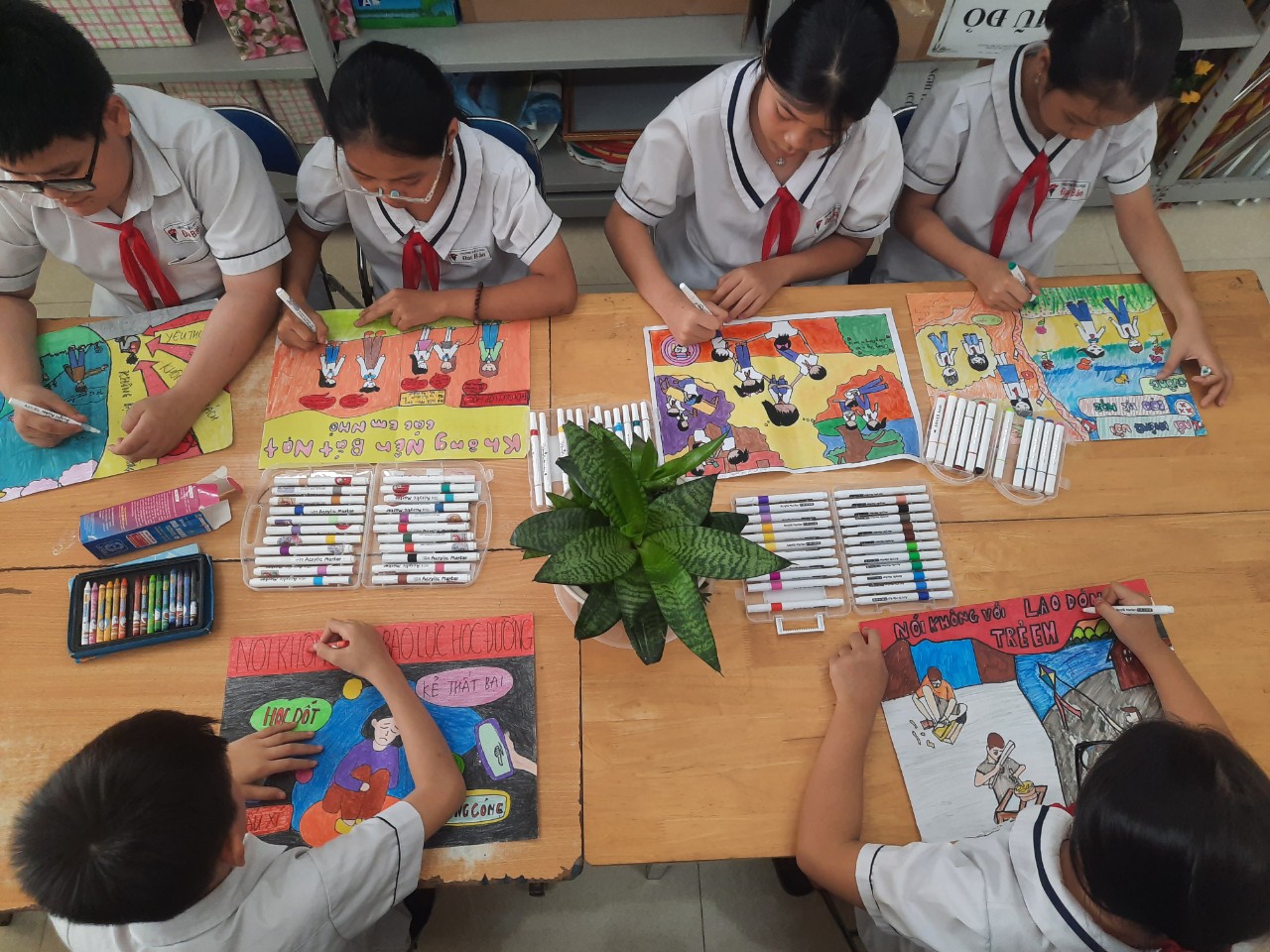 Dưới hình thức vẽ tranh cổ động trên khổ giấy A3, không giới hạn về màu sắc, nguyên vật liệu. Bài vẽ gồm 2 chủ đề: Phòng ngừa bạo lực học đường và Phòng ngừa lao động trẻ em.