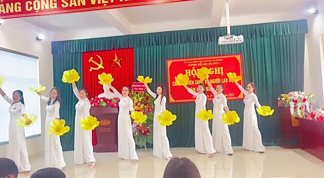Mở đầu chương trình là các tiết mục văn nghệ do các đồng chí giáo viên trong chi đoàn nhà trường biểu diễn với bài múa “Bài ca cô giáo trẻ” và bài hát múa “Việt Nam trong tôi là”