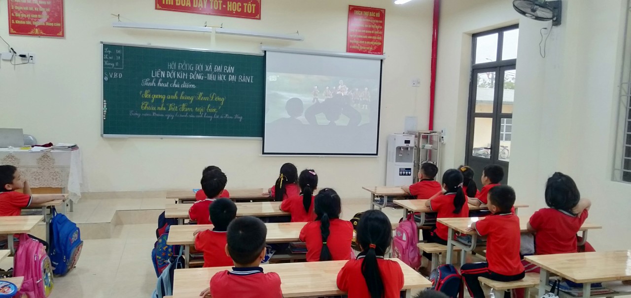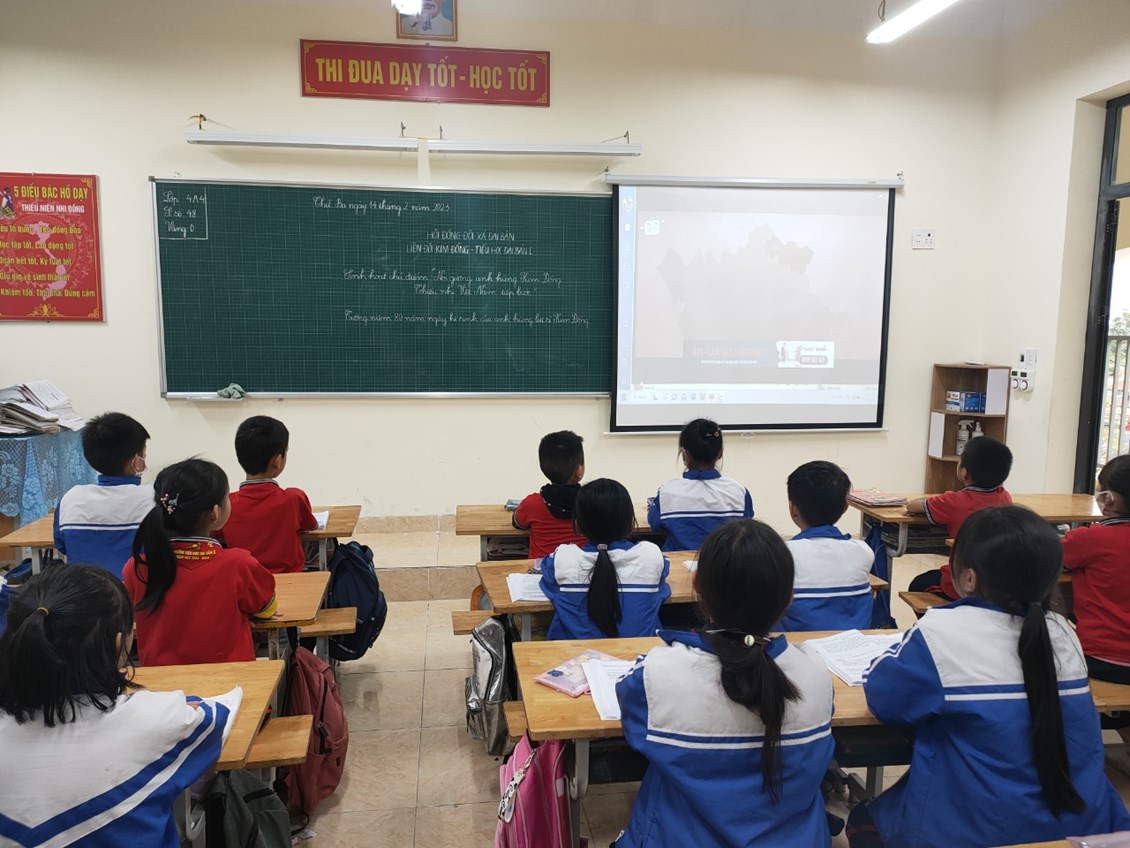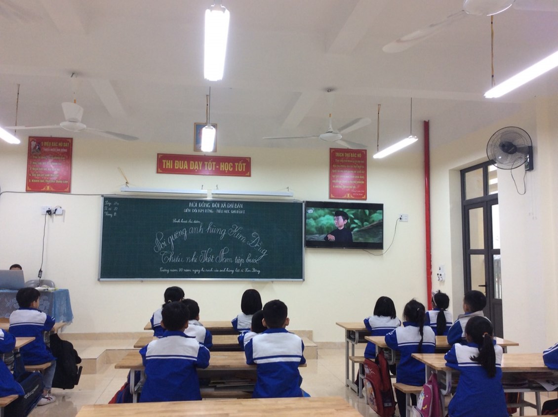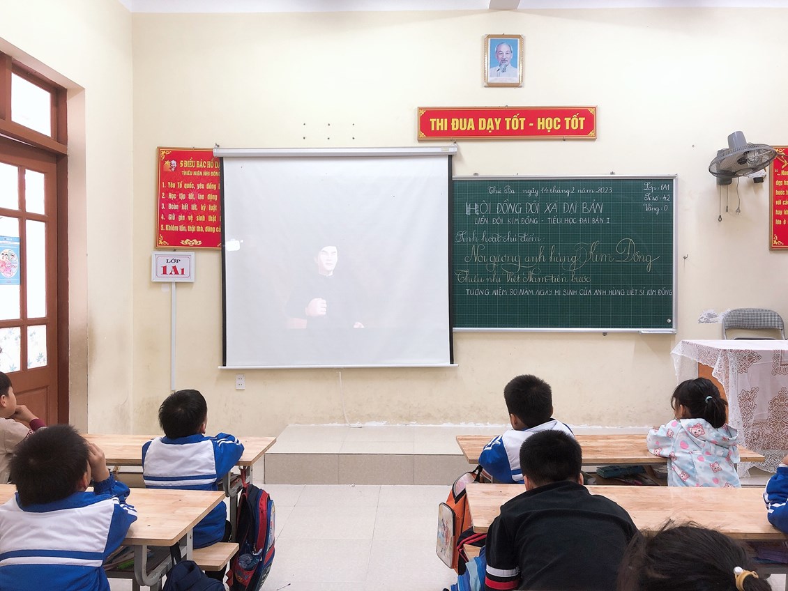 Để hưởng ứng hoạt động, các lớp đã cho các em học sinh ôn lại tiểu sử Anh hùng liệt sĩ Kim Đồng – Người đội trưởng đầu tiên của Đội TNTP Hồ Chí Minh về quá trình tham gia cách mạng, lòng yêu nước, sự hy sinh anh dũng với tinh thần “Tuổi nhỏ chí lớn” của anh qua bộ phim hoạt hình "Anh Kim Đồng - Tuổi nhỏ chí lớn".