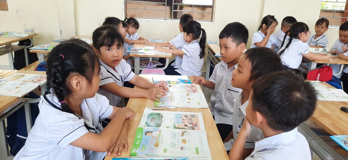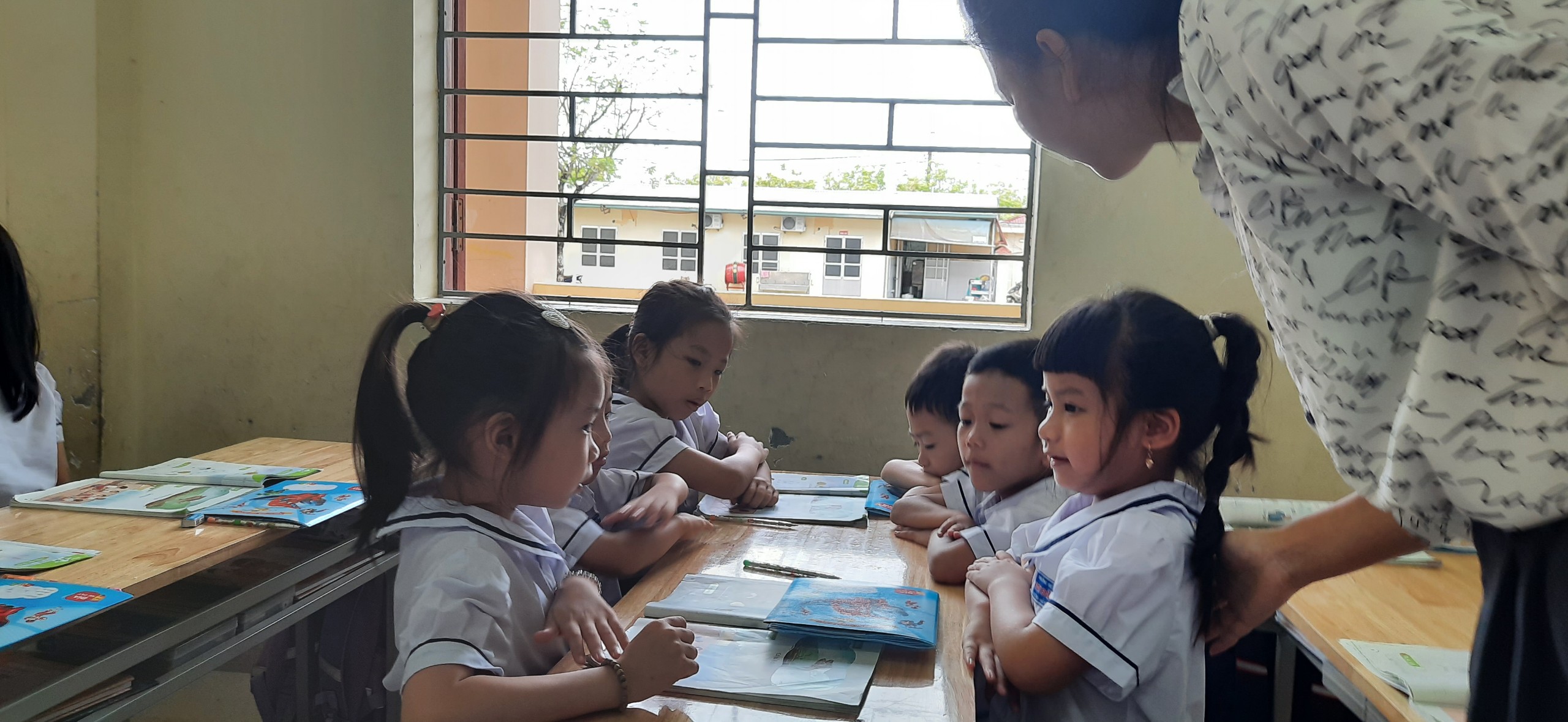 Cô giáo Cao Thị Thu cùng các em học sinh lớp 1A5 đã lên lớp tiết Tiếng Việt