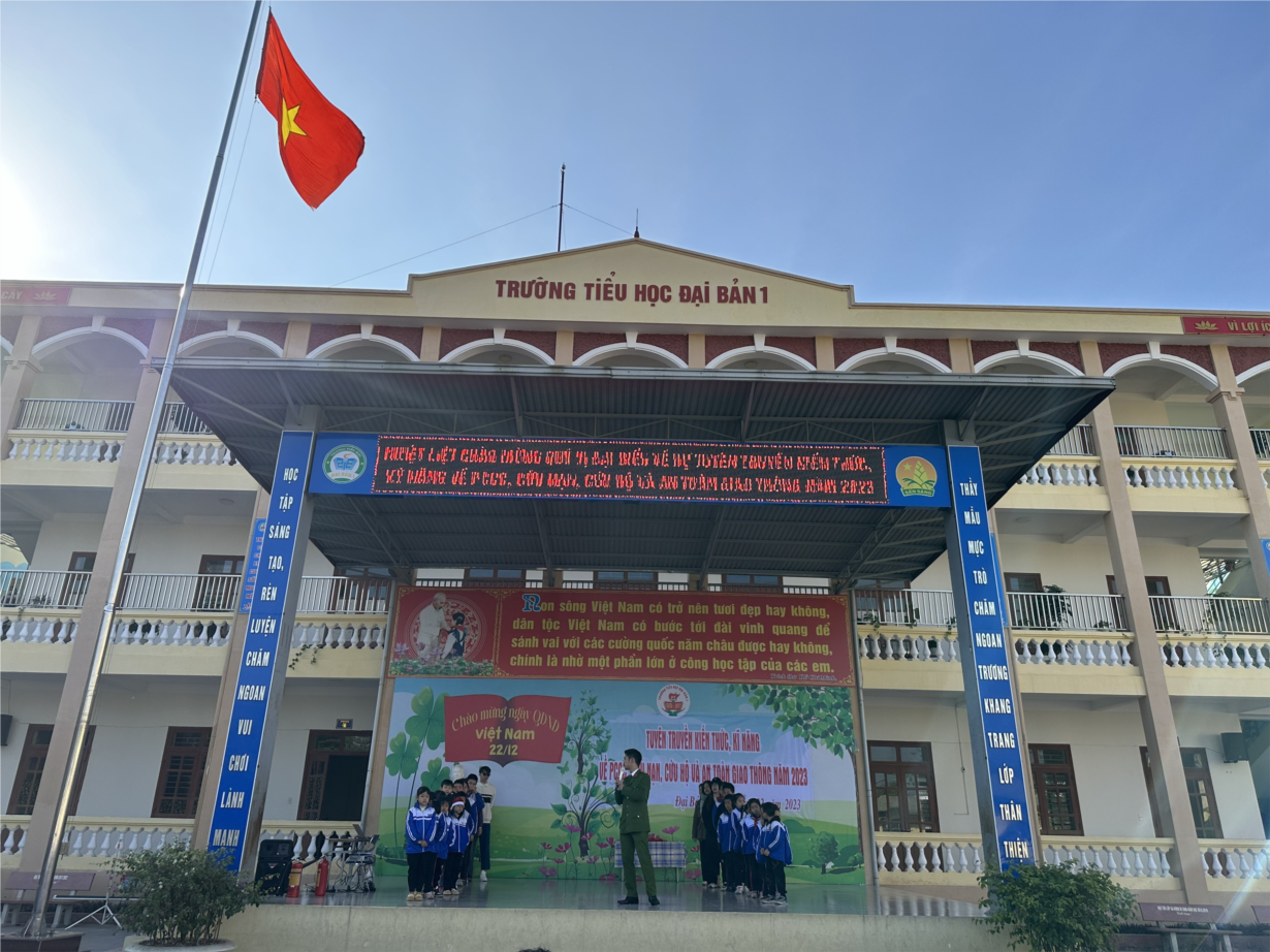 Nhằm đẩy mạnh công tác tuyên truyền trong cán bộ, giáo viên, nhân viên và học sinh trong nhà trường về nguy cơ, tác hại của việc cháy nổ, từ đó nêu cao ý thức, trách nhiệm trong công tác PCCC (phòng cháy chữa cháy) và CNCH (cứu nạn cứu hộ) không chỉ ở tại cơ quan, đơn vị mà cả ở gia đình, khu dân cư,…. góp phần hạn chế đến mức thấp nhất tình trạng cháy nổ xảy ra, nhất là trong mùa khô hanh. Sáng ngày 21/12/2023, Trường Tiểu học Đại Bản I đã phối hợp với Ban công an xã Đại Bản cùng với Đội Cảnh sát PCCC và CNCH Công an huyện An Dương đã tổ chức tuyên truyền, hướng dẫn các biện pháp phòng cháy chữa cháy trong trường học cho cán bộ, giáo viên, công nhân viên và hơn 900 học sinh toàn trường.